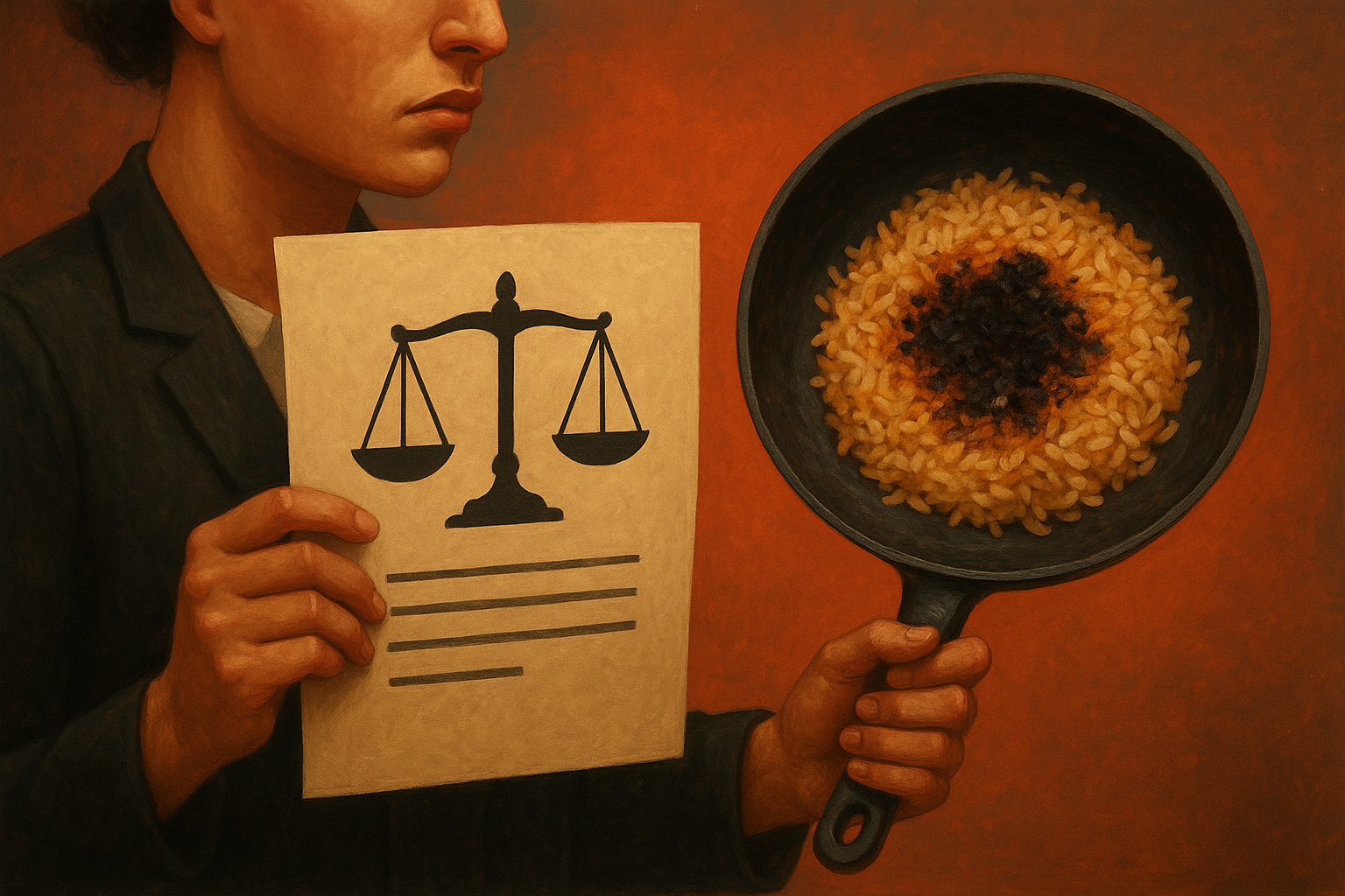 Hay historias de cocina y hay batallas campales. Pero pocas veces la línea es tan delgada y tan sabrosamente absurda como cuando un simple arroz quemado termina en tribunales. Sí, aunque parezca patraña de sobremesa, hay quien pasó de los gritos en la cocina a la toga y el mazo, llevando a juicio nada menos que una receta y su propio coraz n herido.