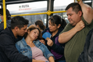 Paramédicos acudieron al lugar y lograron estabilizarla, mientras otros pasajeros eran evacuados con frases como:
